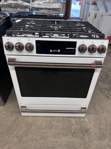 This is a slide-in range for those who love to cook. The industry’s first edge-to-edge cooktop with six versatile burners also includes an integrated griddle to easily handle large meals and family favorites. An integrated temperature probe ensures that meats are prepared to the perfect doneness. And True European Convection creates even baking and roasting results every time. THIS ITEM CAME TO US AS AN ASIS PRODUCT. IT HAS BEEN TESTED AND WORKS. IT COMES WITH A 1 YEAR MANUFACTURER'S WARRANTY. MULTIPLE SCRATCHES, MOSTLY ON COOKTOP FINISH. LITE SCRATCHIN ON HANDLES, DENT ALONG RIGHT SIDE AND SMALL DENT ON RIGHT SIDE OF OVEN DOOR. SMALL DENT ON LEFT SIDE.Read More