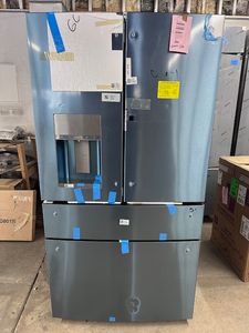 This GE Profile™ 4-french-door refrigerator with door in door features an adjustable temperature drawer with bin caddy, built-in Wi-Fi, LED light wall, soft-close drawers and hands-free autofill dispenser. THIS ITEM CAME TO US AS AN ASIS PRODUCT. IT HAS BEEN TESTED AND WORKS. IT COMES WITH A 1 YEAR MANUFACTURER'S WARRANTY. UNIT HAS A SMALL DENT IN BOTH UPPER DOORS AND A PAIR OF DENTS IN FREEZER DOOR.Read More