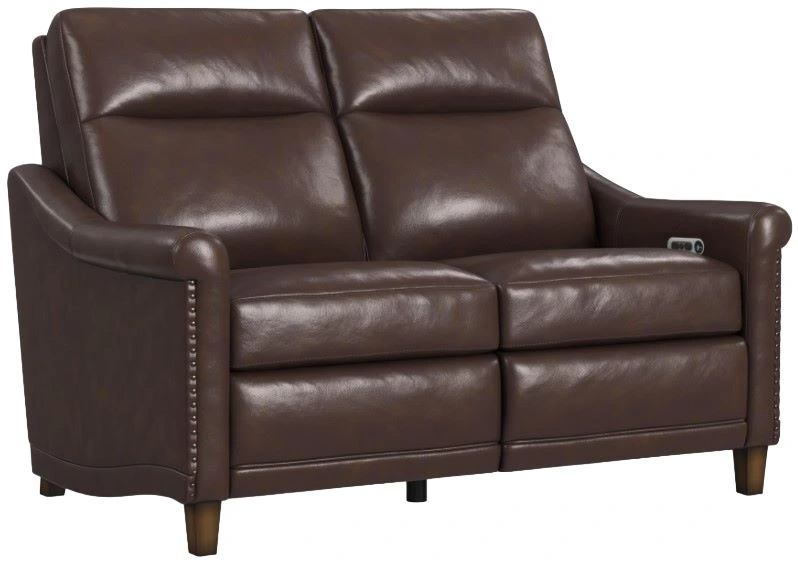 Timeless, traditional details meet today’s modern comfort capabilities with the Elizabeth leather power reclining loveseat. Inspired by vintage stationary furniture, this loveseat features sloped, petite roll arms, curved side base rails and decorative nailhead trim reminiscent of a bygone era. A high-divide back, extended footrests and powered headrest.Read More