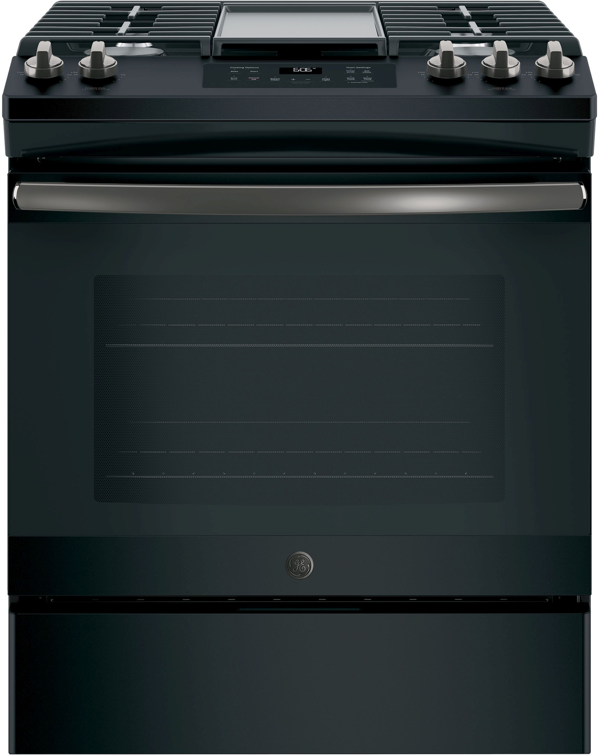 GE® 30” Slide In Gas Range-Black Slate with 5.3 cu. ft. total capacity, steam clean and extra-large integrated non-stick griddleRead More