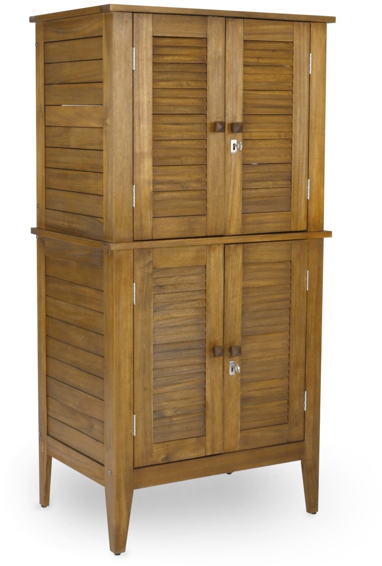 Whether stowing away outdoor supplies or poolside necessities, tuck everything neatly away in a Maho four-door storage cabinet that brings an island flair to your outdoor areas. This solid acacia cabinet is highlighted by a golden teak finish and sealed with linseed oil that brings out the natural beauty of the wood. Both upper and lower compartments include an adjustable shelf, which can each be removed to make room for larger items.