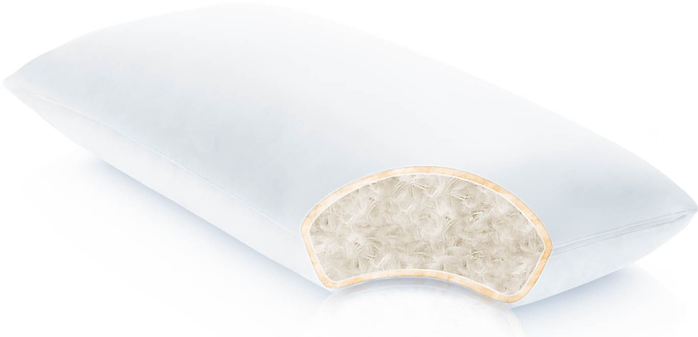 A blend of duck down and duck feathers creates naturally supportive and breathable comfort that can be fluffed and molded for a personalized fit.