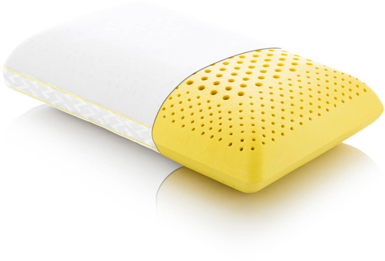 Relax naturally with plush memory foam paired with relaxing aromatherapy spray. Plush, pressure-easing Dough® memory foam is infused with the scent of chamomile for cozy, natural relaxation. Roman chamomile is known for its soothing and relaxing properties. A mini spritzer bottle of natural Roman chamomile aromatherapy spray accompanies the King and Queen size pillows to refresh the aroma. Zoned Technology design creates larger holes in the center of the pillow to cradle the head and smaller holes around the edges for superior neck support. A beautiful and soft Tencel® mesh cover adds the temperature- and moisture-regulating comfort of eco-friendly fabric. Travel size pillow does not include aromatherapy spritzer.