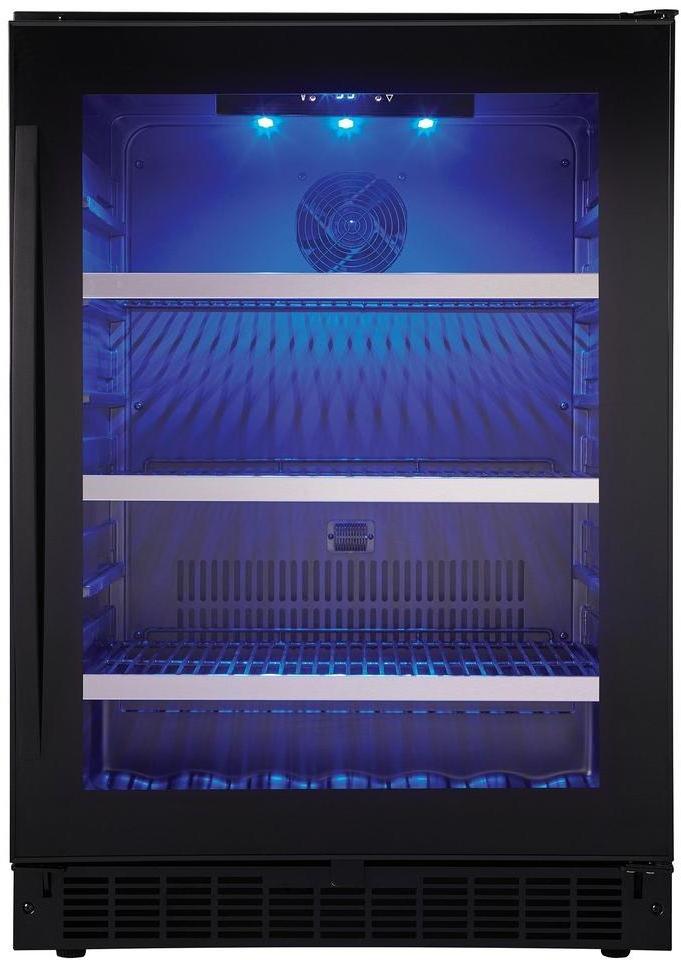 Stainless Steel trimmed black wire shelves assist with cold air evenly dissipating throughout the cabinet for rapid cooling of beverages