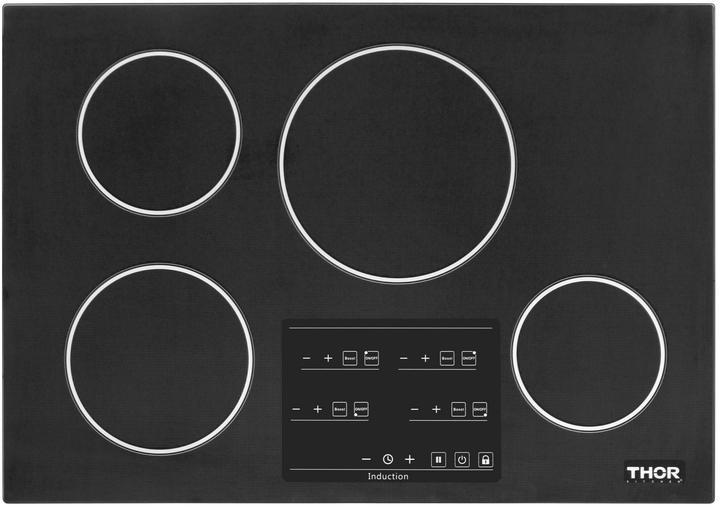 A 4 burner induction cooktop featuring 4 induction elements, touch controls, and a stylish modern design.